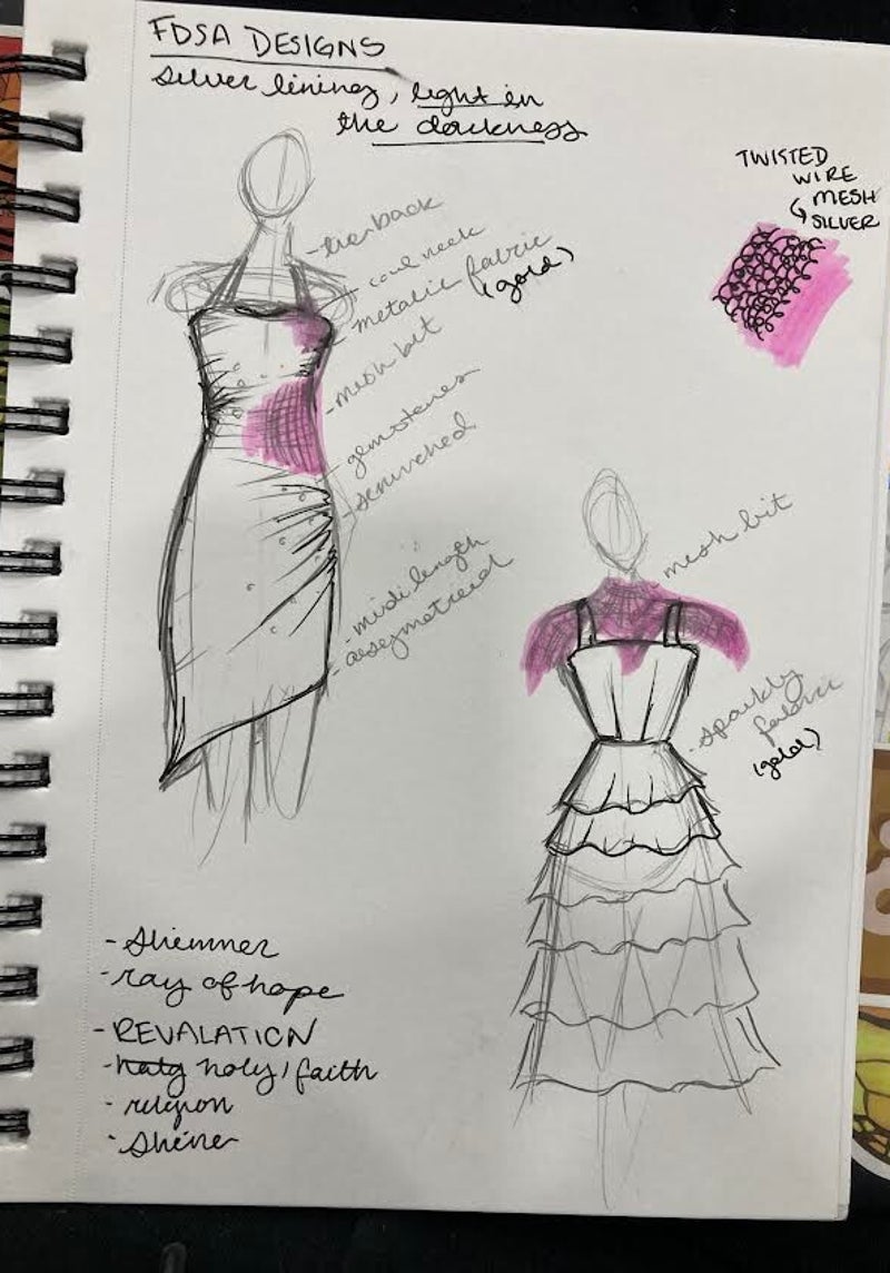 For this show, I took inspiration from what bring me, as well as many other people, hope and light in a dark time- stars. For years, people have looked upon the night sky to the north star and to shooting stars and made wishes that they hoped to come true. Like stars, I wanted these dresses to shine, to mimic the sparkle and glow.